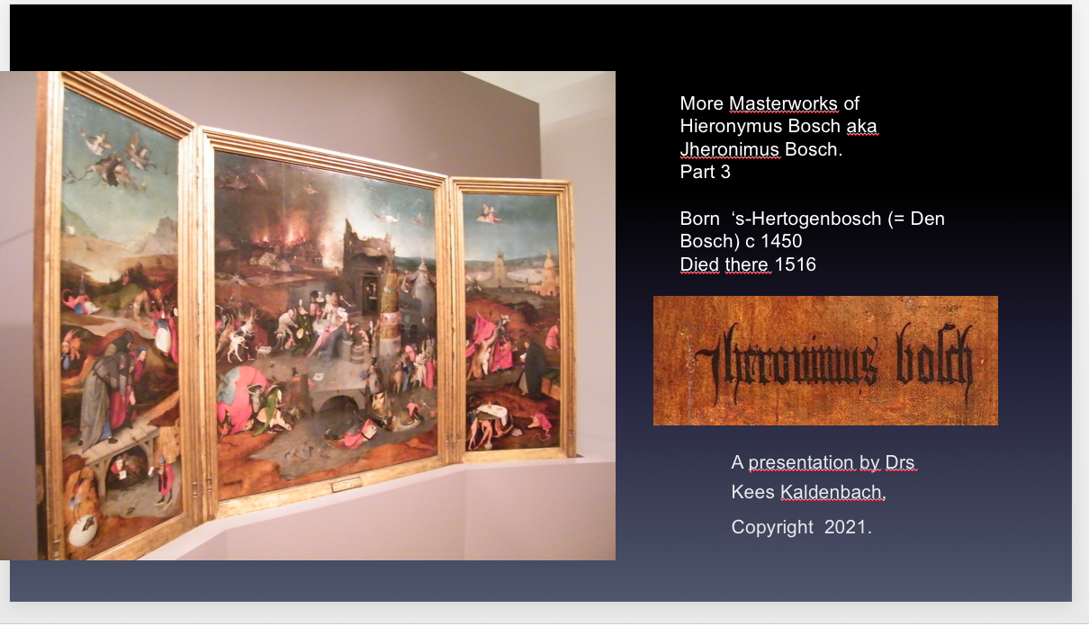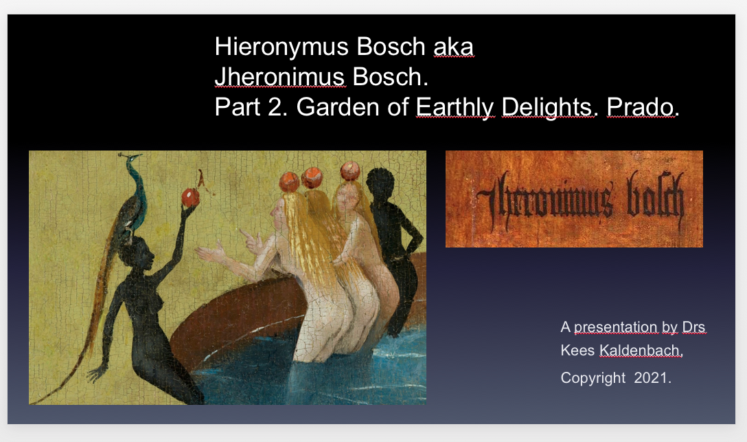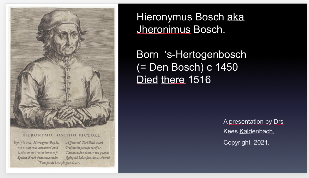 Three brand new Live presented classes PowerPoints on the life and work of the fascinating painter Hieronymus / Jheronymus Bosch.