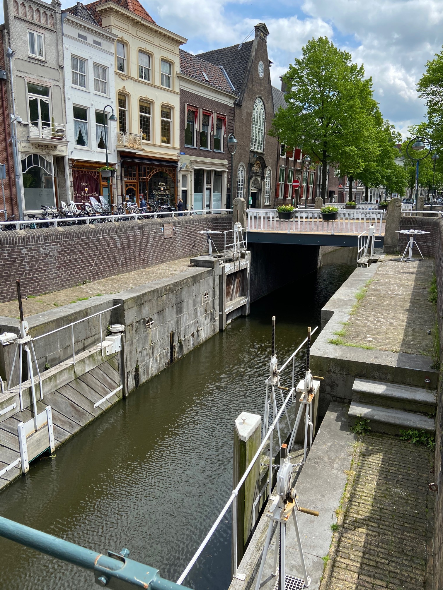 Lock connecting Oude Rijn to Hollandsche IJssel river. Note the narrow width.