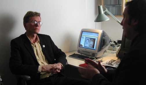 Photo by BBC director Roger Parsons, during a BBC interview, aired on BBC-2 SATURDAY 29th March, 2003 at 7 PM London time. The interviewer is Andrew Graham-Dixon. He has grown to become the art pope after 2012.