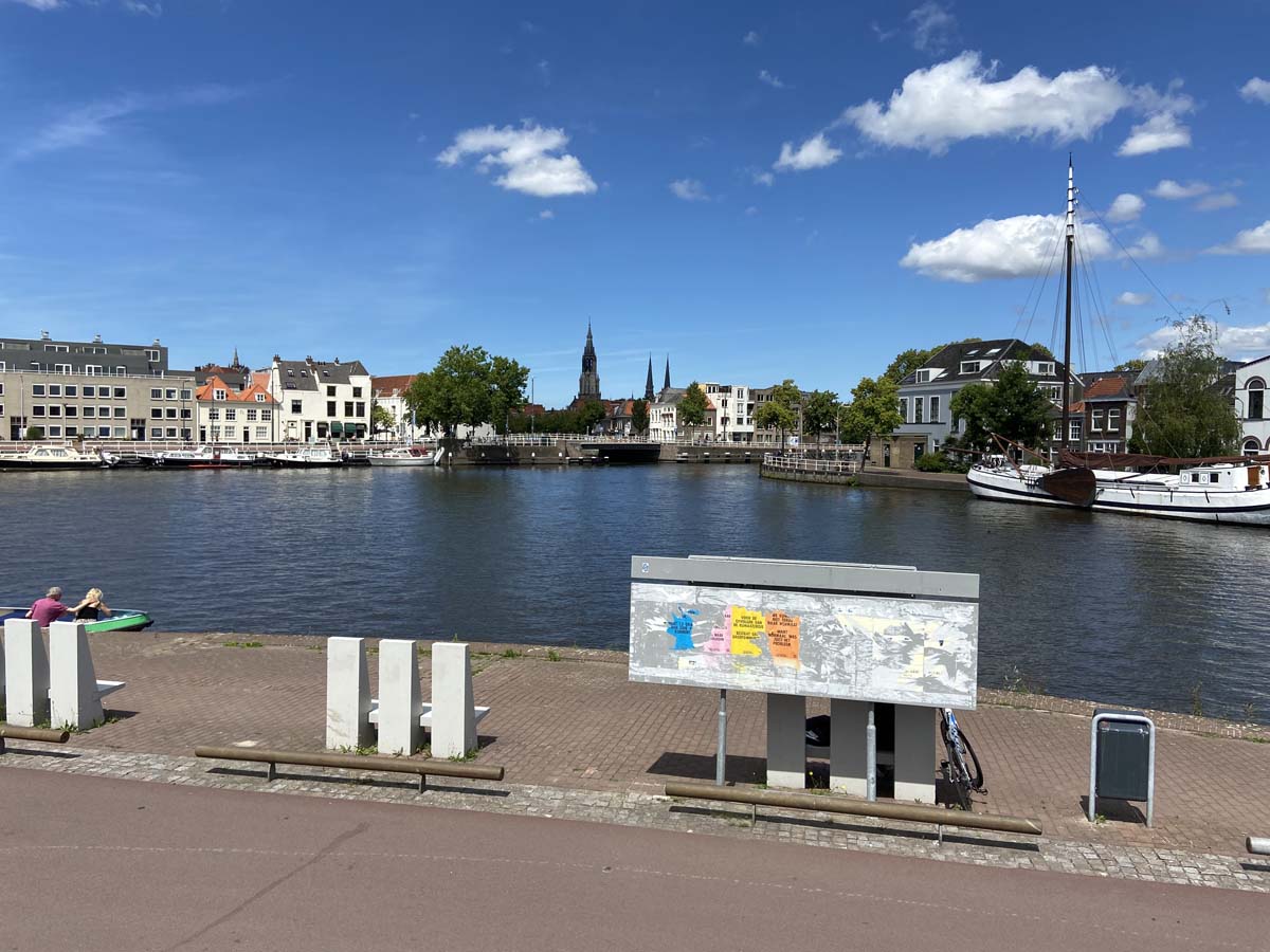 In 1660-1661 Vermeer painted his famous View of Delft in which he changed a lot of elements compared to the given Delft reality: The long continuous roof on the left hand side never existed. The bridge in the middle was hooped, not flat and the twin barbican towers of the Rotterdam gate should be positioned much closer towards us, not pushed sidewards as he did. And he did strange things with the tow barge on the left and the other ships. For that article see https://kalden.home.xs4all.nl/verm/ship/Ships_main.html